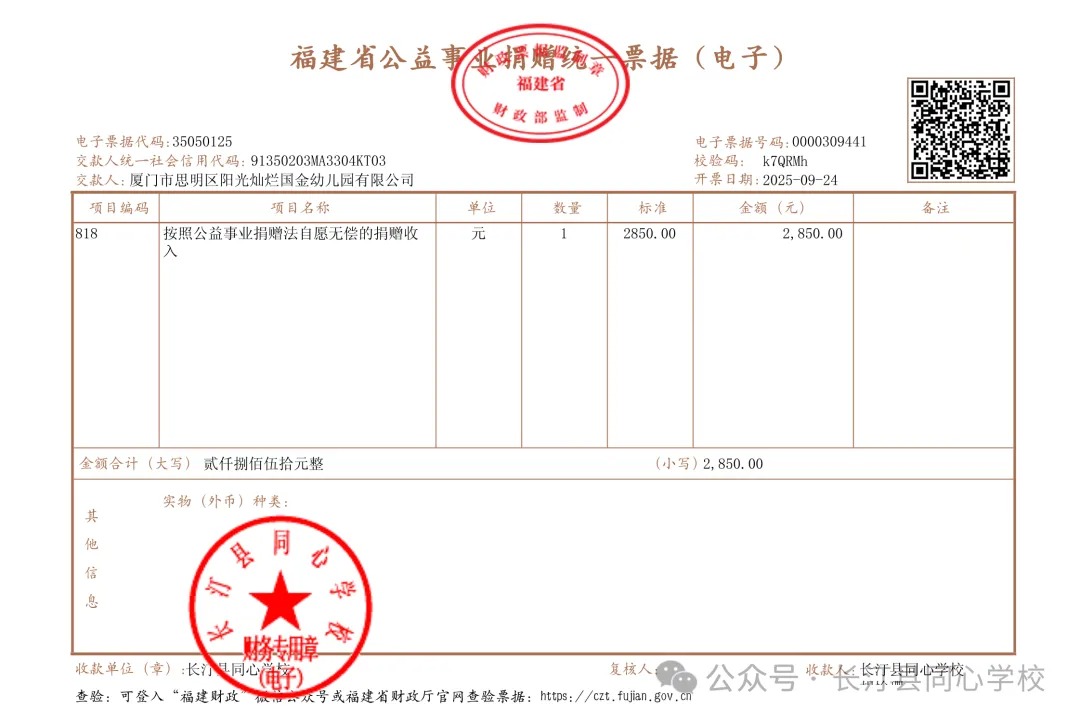 慈善捐赠总额为:2850.00元,捐赠发票公示如下: